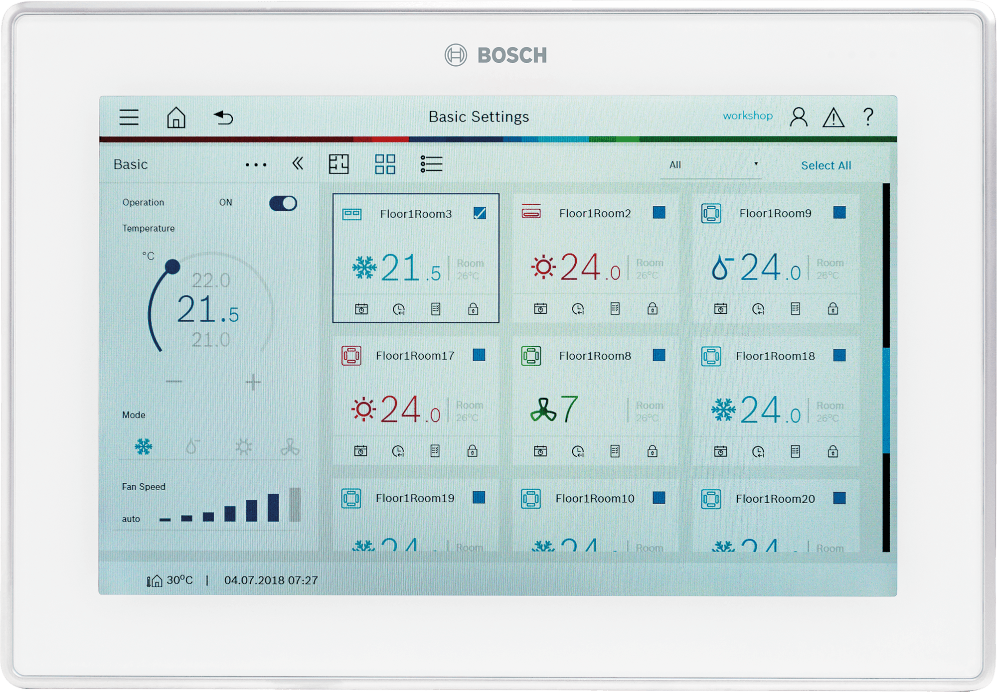 Новый центральный терморегулятор ACC MT обеспечивает интуитивно понятное и надежное управление всеми подключенными компонентами VRF — собственная разработка Bosch. Центральный терморегулятор для систем VRF с современным 10,1-дюймовым сенсорным экраном может управлять до 64 внутренними и 24 наружными блоками.